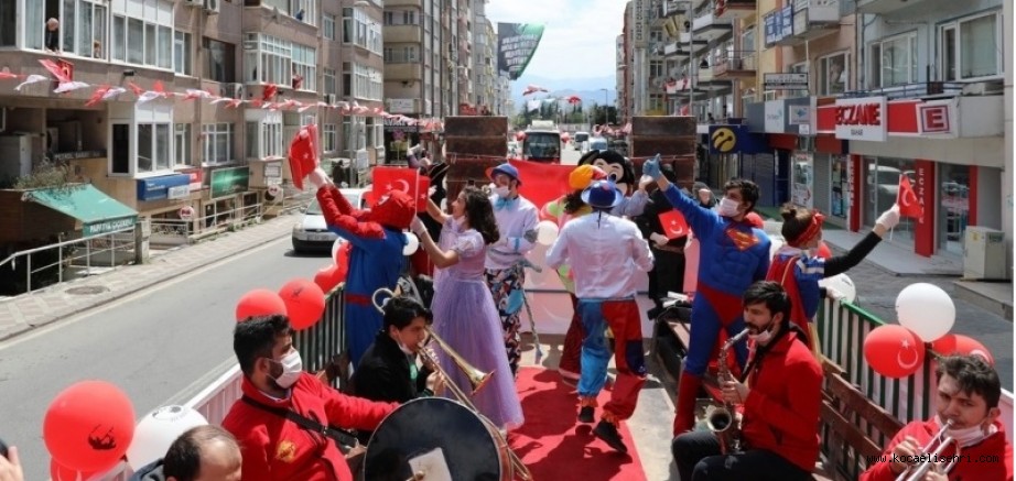 İzmit Belediyesi, 23 Nisan Ulusal Egemenlik ve Çocuk Bayramı etkinlikleri kapsamında, koronavirüs nedeniyle sosyal mesafeyi koruyarak hazırladığı kutlama programıyla, kentin dört bir yanını bayram yerine çevirdi. İzmit Belediyesi Kültür Müdürlüğü’nün koordinasyonunda Türk Bayrakları, Atatürk fotoğrafları ve balonlarla süslenen belediyeye ait araçlar, animatörler ve bando ekipleri eşliğinde marşlar çalarak İzmit’in mahallelerinde dolaştı. Program İzmit Belediyesi sosyal medya hesaplarından da canlı olarak yayınlandı.