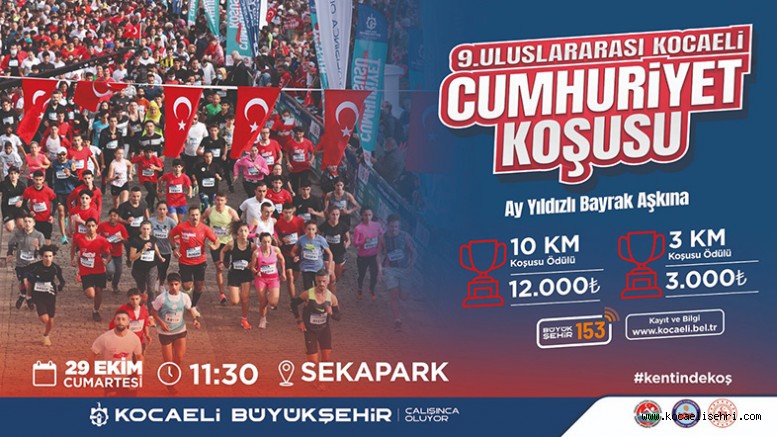 Her yıl büyük ilgi gören ve Cumhuriyet kutlamalarına büyük anlam katan koşu; 3 km halk koşusu, 10 km profesyonel sporcu koşusu ve Çocuk Maratonu olmak üzere 3 ayrı kategoride yapılacak. Yarış parkurunun başlangıç ve bitişi ise Sekapark Uçurtma Tepesi önünde olacak. 10 km koşu saat 12.05’de, 3 km halk koşusu 12.10’da, 1 km Çocuk Maratonu ise saat 12.15’de başlayacak. Ayrıca 3 kilometrelik halk koşusuna Kocaeli sınırlarında ikamet eden kişiler katılabilecek. Kocaeli dışından katılarak dereceye giren kişiler diskalifiye edilecek.