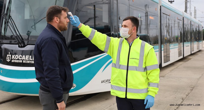 Kocaeli’nin simgesi haline gelen Akçaray’ı kontrol eden vatmanların da güvenli sürüş amacıyla sefer öncesi ve sonrası ateşleri ölçülerek ilgili amirliği tarafından gün gün not ediliyor. Turlarına başlamadan önce alınan ateş tur bitiminde tekrarlanarak vatmanların oluşabilecek sağlık problemleri anlık kontrol ediliyor.