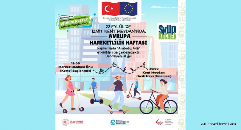 Avrupa Hareketlilik Haftası kapsamında 22 Eylül günü tüm dünyada “Car Free Day” (arabasız gün) olarak kutlanmakta olup, ilimizde bu kutlamanın İzmit Kent Merkezi'nde yapılması planlanıyor. 22 Eylül 2023 tarihinde saat 19.00’da Merkez Bankası'nın önünden kortej başlayacak ve saat 20.00’de İzmit Kent Meydanı'nda açık hava sineması gösterimi ile son bulacak. Tüm halkımız kortej ve açık hava sineması gösterimine davetlidir.