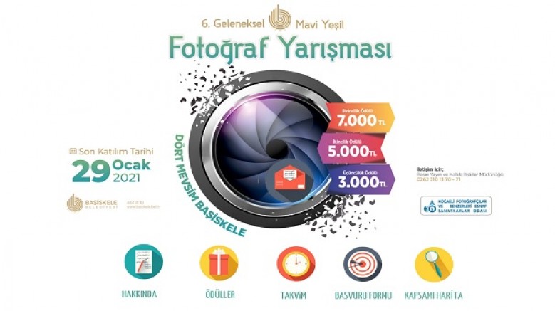 “Mavi Yeşil Başiskele” 2020-2021 yılı fotoğraf yarışmasının konusu serbest olarak belirlenmiştir. Yarışmanın amacı, Başiskele’nin tanıtımına katkıda bulunmak ve amatör veya profesyonel fotoğrafçıların kendi pencerelerinden Başiskele’ye bakışlarını yansıtan, kurumumuzun turizm, tanıtımına fayda sağlayacak eserlerini toplumla paylaşmaya aracı olmak, onların motive olmasına katkıda bulunmaktır.