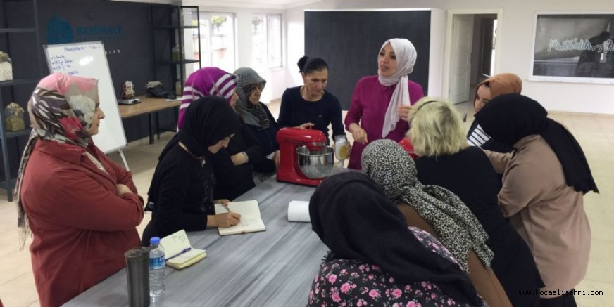 Başiskele Halk Eğitim Merkezi’nden görevli uzman eğitmenler tarafından verilen pastacılık kursuna 15 kursiyer, çikolata yapımı kursuna 18 kursiyer katılım gösteriyor.