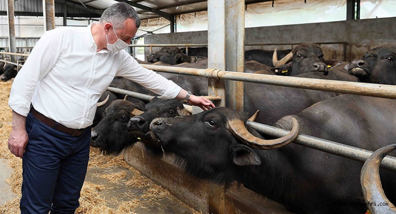 Kandıra Gıda İhtisas Organize Sanayi Bölgesi’ndeki incelemesinin ardından İtalya’dan getirilen süt verimi yüksek mandaların yer aldığı Buffa Süt Ürünleri firmasını ziyaret etti. Şirket yetkililerinden detaylı bilgi alan üretim alanlarını gezen Başkan Büyükakın, Türkiye’nin en kaliteli ve en taze İtalyan peynirleri Mozzarella, Burrata, Ricotta ve Mascarpone ile birlikte manda yoğurdu ve kaymak da üretildiği bilgisini aldı. Kandıra bölgesinin gerek tarım gerekse hayvancılık alanında çok önemli avantajlarının bulunduğunu sözlerine ekleyen Başkan Büyükakın, “Büyükşehir Belediyesi olarak tarım ve hayvancılık alanlarına dönük tüm ARGE projeleri olmak üzere bize düşen görevleri yerine getirmek için çalışmalarımızı sürdüreceğiz. Yatırımcımızın, üreticimizin ve hemşehrilerimizin bizden beklentilerine dönük yatırımları da yapmaya devam edeceğiz” diyerek sözlerini tamamladı.
