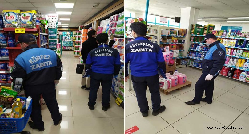 Zabıta ve İl Ticaret Müdürlüğü ekipleri, Kocaeli İl Umumi Hıfzısıhha Kurulu’nun aldığı kararların sahadaki denetimlerini titizlikle yapıyor. Market, eczane ve diğer işyerlerinde yapılan denetimler haksız fiyat artışı (fahiş fiyat), satıştan kaçınma, hijyen kontrolü, işyerlerinde çalışanların koruyucu maske ve eldiven kullanımı, hizmet sunulan işyerinde en fazla kaç müşteri olması, market içerisinde müşterilerin arasına mesafe koyması ve market girişlerinde el dezenfektanı bulunması gibi birçok kuralın uygulanıp uygulanmadığı denetleniyor. Ayrıca alınan karar gereği maske satışının yasaklandığı işyerlerine hatırlatılıyor.