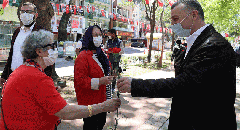 Marmara Belediyeler Birliği ve Kocaeli Büyükşehir Belediye Başkanı Doç. Dr. Tahir Büyükakın, 10 Mayıs Anneler Günü nedeniyle İzmit yürüyüş yolunda sokağa çıkma kısıtlaması belirli saatler arasında kalkan 65 yaş üzeri kadınların Anneler Günü’nü kutladı. Annelere karanfil hediye eden ve sohbet eden Başkan Büyükakın, dışarıya çıkan 65 yaş üstü vatandaşların bir isteği olup olmadıklarını sordu. “Biz Kocaeli’de annelerimizi hiç unutmadık” diyen Başkan Büyükakın’a, bu ince davranışından dolayı anneler çok teşekkür etti. “Sizleri sağlıklı ve her daim bizim yanı başımızda görmek bize mutluluk veriyor” diyen Başkan Büyükakın, “Koronavirüs nedeniyle uzun bir zamandır evlerinden çıkamayan büyüklerimizin bugün mutlu görmek bizlere enerji verdi” açıklamasını yaptı.