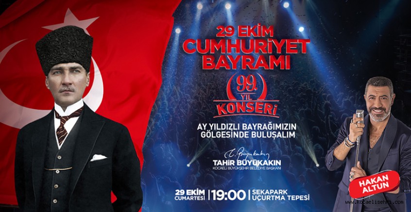 Bu kapsamda sevilen sanatçı Hakan Altun, 29 Ekim Cumartesi akşamı Cumhuriyet Bayramı’nın 99. yılına özel bir konser verecek. Ay yıldızlı bayrağımızın gölgesinde ve Seka Park Uçurtma Tepesi önünde gerçekleştirilecek olan konser 19.00’da başlayacak.