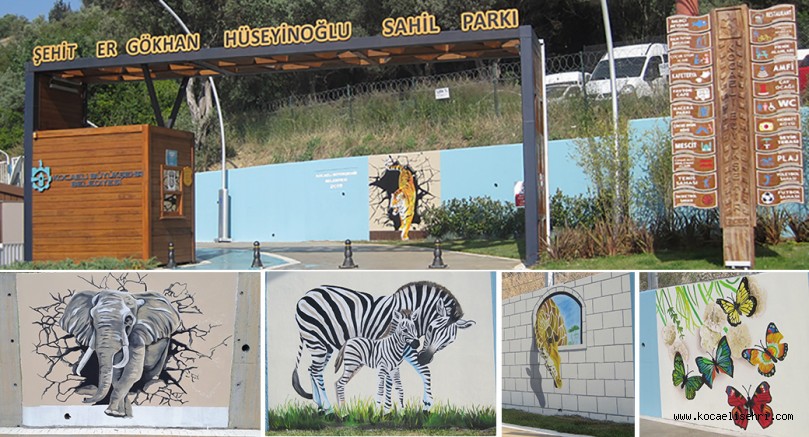 Kocaeli Büyükşehir Belediyesi bugüne kadar şehrin birçok noktasına resim uygulama çalışması yaparak görsel ve estetik anlamda zenginleşme sağladı. “Güzel Şehrim Kocaeli Projesi” kapsamında yapılan resim uygulama çalışması, yakın zamanda tamamlanan Darıca Şehir Er Gökhan Hüseyinoğlu Sahil Parkı’na da uygulandı. Profesyonel ressamlar tarafından akrilik dış cephe boyası ile çizilen resimler, sahil parkına güzellik ve estetik zenginlik kattı. Doğa, manzara ve çeşitli hayvan figürlerinin konu edildiği resim uygulamaları kısa sürede tamamlandı.