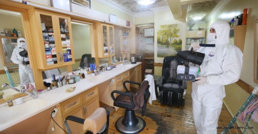 İlçenin her noktasında titiz bir dezenfekte çalışması yürüten Derince Belediyesi ekipleri, yeni tip koronavirüs (Kovid-19) tedbirleri kapsamında her noktayı adeta pırıl pırıl yapıyor. Derince Belediyesi ekipleri bu kapsamda ilçede son olarak kuaförlerden gelen talepleri de yerine getirdi. İçişleri Bakanlığı Genelgesi doğrultusunda faaliyetlerine ara veren kuaförlerde dezenfekte çalışması yapan Derince Belediyesi ekipleri, ilçe genelindeki tüm bayan ve erkek kuaförlerinde kapsamlı bir temizlik çalışması yaptı. Derince Belediyesi’nin yaptığı bu uygulama ilçedeki esnaflar tarafından da memnuniyetle karşılandı.