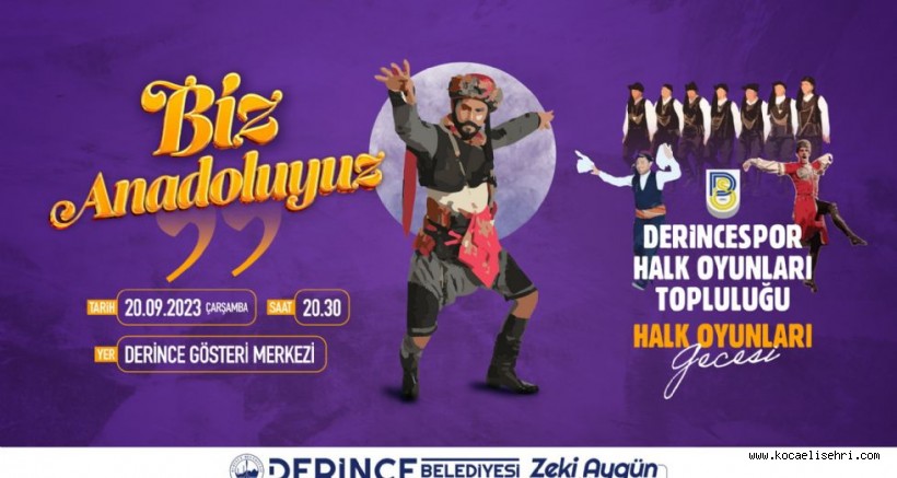 Derince Belediyesi’nin Biz Anadoluyuz etkinlikleri kapsamında Derincespor Kulübü ile birlikte düzenleyeceği Halk Oyunları Gecesi için artık son hazırlıklar yapılıyor. Derincespor bünyesindeki kursiyerlerinden oluşan Halk Oyunları Topluluğu’nun birbirinden özel gösterilere imza atacağı program, 20 Eylül Çarşamba günü saat 20.30’da Harikalar Sahili’nde bulunan Derince Gösteri Merkezi’nde gerçekleşecek. Anadolu’nun tüm renklerinin sahneleneceği gösteriler geniş bir yelpazede katılımcılara adeta halk oyunları ziyafeti sunacak. Kültürel ve sanatsal etkinlikler kapsamında ücretsiz olarak gerçekleşecek olan Halk Oyunları Gecesi’ne tüm vatandaşların davetli olduğu belirtildi.