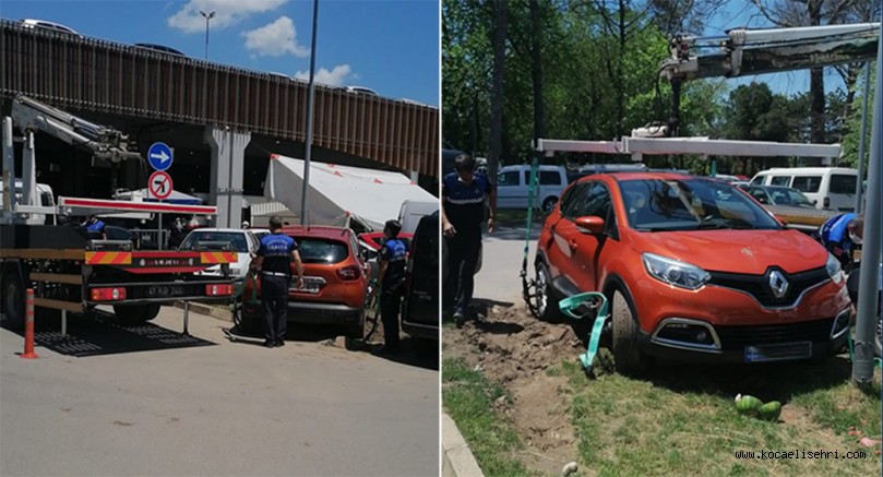 İzmit Doğu Kışla Perşembe Pazarı alanında bazı araçlar yeşil alanlara ve yasaklı bölgelere park ediliyor. Bu araçlar hakkında işlem yapan Büyükşehir Belediyesi ekipleri, çekici ile araçları yerlerinden kaldırıyor.