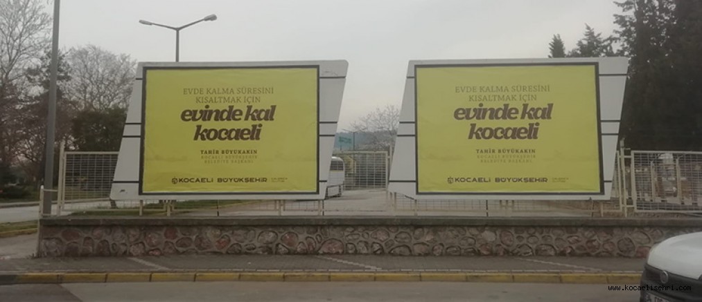 Koronavirüs’e (Covid-19) karşı ülkemizde verilen mücadelede yerel yönetimler dezenfektan uygulamalarının yanı sıra vatandaşların salgının yayılmaması amacı ile evinde kalmasını sağlamak için çeşitli çalışmalar gerçekleştiriyor. Kocaeli Büyükşehir Belediyesi de Başkan Doç. Dr. Tahir Büyükakın’ın “Evinde Kal Kocaeli Aramızda Ayrılık Yeşermesin” sloganı ile hazırlanan bilgilendirme panolarını şehrin çeşitli yerlerindeki oturma banklarına yapıştırdı. Mesaj ayrıca kent genelindeki billboard ve bilgilendirme panoları ve bayraklarda da yerini aldı.