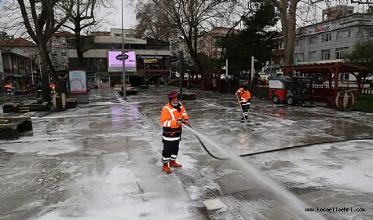 Bu kapsamında kentin en büyük meydanı Anıtpark?ta baştan aşağıya yıkanarak, ekipler tarafından dezenfekte edildi.