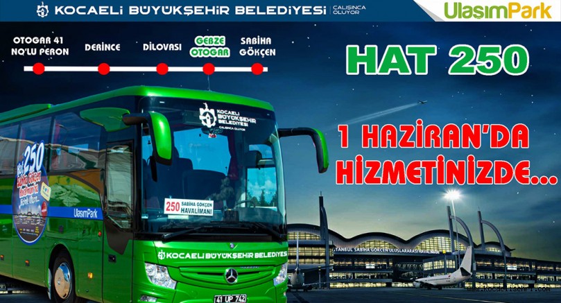 UlaşımPark tarafından vatandaşları Sabiha Gökçen Havalimanı’na aktarmasız ulaştıran Hat 250, 1 Haziran’da yolcuları ile buluşuyor. 1 Haziran’da seferlerine başlayacak Hat 250 1 - 3 Haziran aralığında Gebze Otogarına uğrayarak Sabiha Gökçen Havalimanı’na ulaştıracak. 4 Haziran’dan itibaren ise 44 seferle yolcularına konforlu, hızlı ve sağlıklı ulaşım sağlayacak.