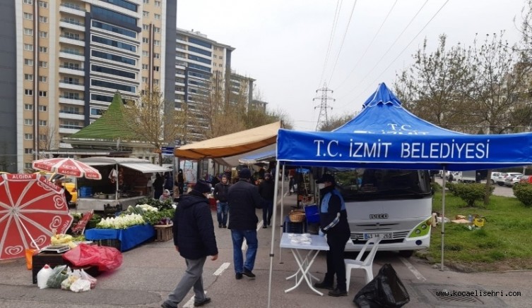 Pazar girişlerinde İzmit Belediyesi Zabıta Müdürlüğü ekipleri tarafından ücretsiz maske ve eldiven dağıtılırken vatandaşların ellerini temiz tutması, mikroplardan koruması adına İzmit Belediye Başkanı Av. Fatma Kaplan Hürriyet’in İzmit halkının hizmetine sunduğu dezenfektan otomatları da yer aldı. Pazara giriş ve çıkış yapan vatandaşlar bu otomatlarda ellerini dezenfekte etti.