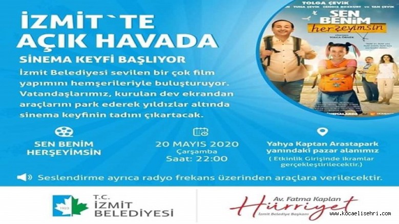 İzmit Belediyesi Kovid-19 tedbirleri kapsamında sinema salonlarına gidemeyenler için yıldızlar altında arabalı açık hava sineması etkinliği düzenleyecek.