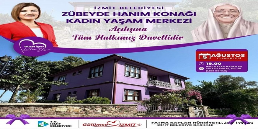 İzmit Belediyesi, Zübeyde Hanım Konağı Kadın Yaşam Merkezi’ni kente kazandırmaya hazırlanıyor. Hacı Hasan Mahallesi Kolaylı Sokak No.28 adresinde hizmet verecek Zübeyde Hanım Konağı Kadın Yaşam Merkezi’nin açılışı 5 Ağustos Cumartesi günü saat 19.00’da gerçekleştirilecek.