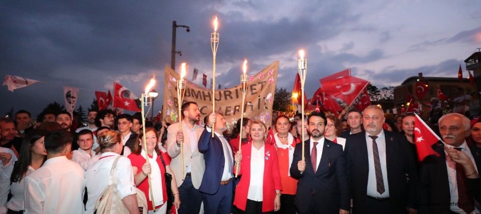 Kültür Tepesinde başlayan 100. Yıl Cumhuriyet Kortejinde 100 metre Türk bayrağı açıldı. Binlerce vatandaş ellerinde meşalelerle İzmit Belediye Meydanına hareket etti. Cumhuriyet Bayramı coşkusu Belediye Meydanı’nda devam etti.