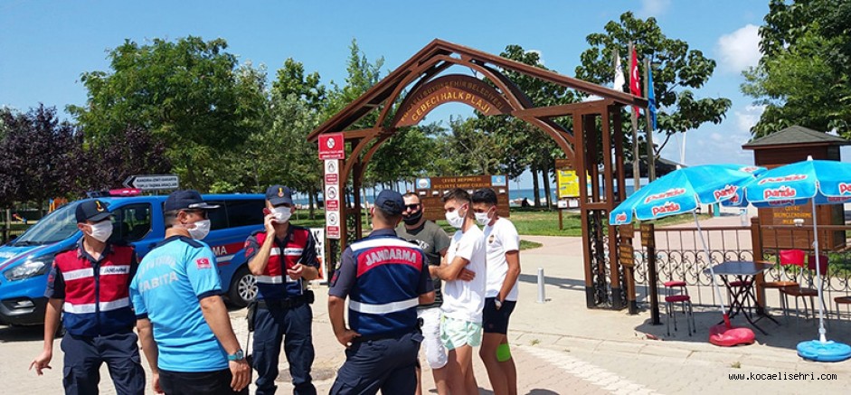 Kocaeli Büyükşehir Belediyesi Zabıta Dairesi Başkanlığına bağlı ekipler, Kandıra İlçe Jandarma Komutanlığı Kefken Jandarma Karakol ekipleri ile birlikte koronavirüs (COVID-19) tedbirleri kapsamında sahillerde denetim gerçekleştiriyor. Ekipler özellikle hafta sonu yoğunluğun yaşandığı Mavi Bayraklı Cebeci Sahil Plajı’nda denetim gerçekleştirdi.