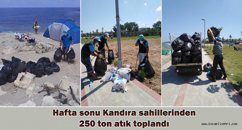 Vatandaşların aileleri ile birlikte dinlenip denize girdiği Kandıra mavi bayraklı plaj ve koylarında, Park ve Bahçeler Daire Başkanlığı bünyesindeki 100 personel 24 saat mesai yaptı. Vatandaşların temiz bir çevrede dinlenebilmesi için hummalı bir çalışma gerçekleştiren ekipler, evsel çöp, yosun ve diğer türlerdeki çöplerden oluşan 250 ton atık topladı. Toplanan atıklar İZAYDAŞ tesislerinde bertaraf ediliyor.