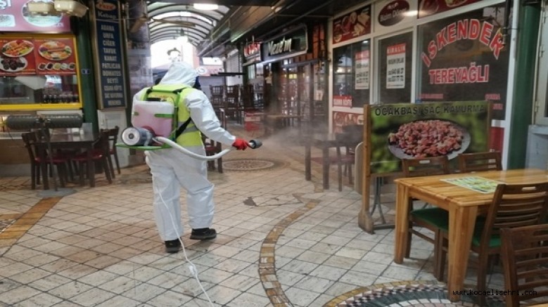 Koronavirüse karşı alınan önlemler kapsamında İzmit’in en uğrak noktalarından biri olan içerisinde kuyumcular, büfeler ve lokantaların yer aldığı Kapanönü Çarşısı, İzmit Belediyesi ekipleri tarafından detaylı bir şekilde ilaçlandı. Özellikle ortak kullanım alanlarının titizlikle ilaçlandığı çarşıda esnaf yapılan çalışmadan dolayı duyduğu memnuniyeti ifade etti.
