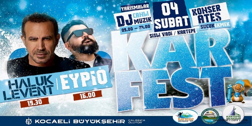 Kocaeli Büyükşehir Belediyesi ile Kartepe Belediyesi işbirliğiyle 2.’si düzenlenecek olan Kar-Fest, ziyaretçilerine unutulmaz anlar yaşatmaya hazırlanıyor. Bu yıl 4 Şubat’ta sabah 9.00’da başlayıp geceye kadar sürecek, Haluk Levent ve Eypio’nun en güzel şarkılarını seslendireceği festivalin basın lasmanı gerçekleşti.