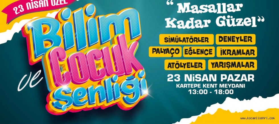 23 Nisan Ulusal Egemenlik ve Çocuk Bayramı etkinlikleri kapsamında Kartepe Belediyesinin düzenlediği 5’nci Bilim ve Çocuk Şenliği’nde çocuklar doyasıya eğlenecekler. Kartepe Kent Meydanı’nda 13.00 – 18.00 saatleri arasında gerçekleşecek şenlikte ring servisler hizmet verecek.