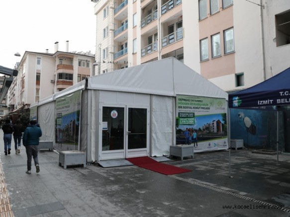 İzmit Belediyesi ve İstanbul Büyükşehir Belediyesi’nin ortak projesi depreme dayanıklı, afet odaklı sosyal konut projesi Kiptaş İzmit Çınar Evler’e vatandaşların kolayca başvuru yapabilmelerini sağlamak için, Balsa B Blok arkasına irtibat çadırı kuruldu. İrtibat çadırını ziyaret eden Başkan Hürriyet, çalışmaları yerinde inceledi. Başkan Hürriyet, “İBB Kiptaş işbirliğiyle 143 konut 5 ticari birimden oluşan Kiptaş İzmit Çınar Evler projesi ile İzmitli vatandaşların nitelikli, sosyal konut ihtiyacını karşılayacağız. Başvuru yapmak isteyen vatandaşlarımız, irtibat çadırına gelerek bu doğa dostu, yenilikçi konutlarla ilgili kolaylıkla bilgi sahibi olabilecekler” dedi.