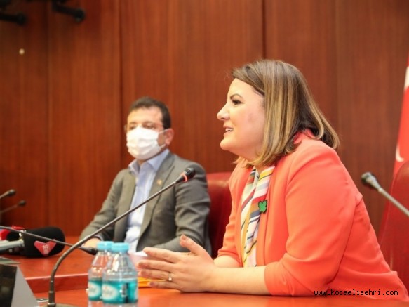 İzmit Belediye Başkanı Av. Fatma Kaplan Hürriyet; ‘Bugün gerçekten heyecanlı ve bir o kadar gururlu ve onurluyum. Türkiye’nin kalbi İstanbul gibi bir belediyenin, İzmitliler için atıyor olmasında ufacık bir payımız varsa ne mutlu bize. Kısa süre önce başlamıştık çalışmalara, sayın başkanımız ikinci seçilişinden sonra hayırlı olsun ziyaretine gittiğimizde, İzmit’e geleceğim demişti. ‘Burada anılarım hatıralarım var, İsmet paşada top oynamışlığım var’ dedi ve geldi. Burada hatırlarsanız sahneden herkese bir söz vermişti, İzmit Belediyesi ile beraber çok güzel işlere imza atacağız, dedi. Söz verdi ve tuttu. Başkanımız bize bu kadar yoğunluğunun arasında ciddi bir zaman ayırdı. İzmit’e dair neler yapabileceğimizi konuştuk. Yaklaşık 46 başlıkla çalışıyoruz, tabi bu başlıklar sürpriz, zamanla açıklayacağız ama çalışmaya başladık.