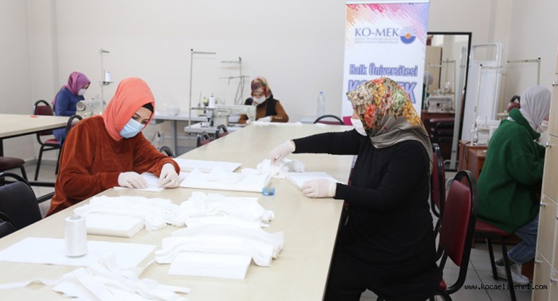 Başkan Doç. Dr. Tahir Büyükakın’ın talimatıyla hemen harekete gecen KO-MEK kurs merkezleri gece gündüz demeden çalışmalara başladı. Kurs merkezlerinde usta öğreticisinden temizlik görevlisine kadar herkes maske ve koruyucu giysilerin yapılması için çalışıyor. Bu kapsamda hemen eksikleri tedarik ederek işe başlayan KO-MEK, 100 bin maskenin üretimine başladı.