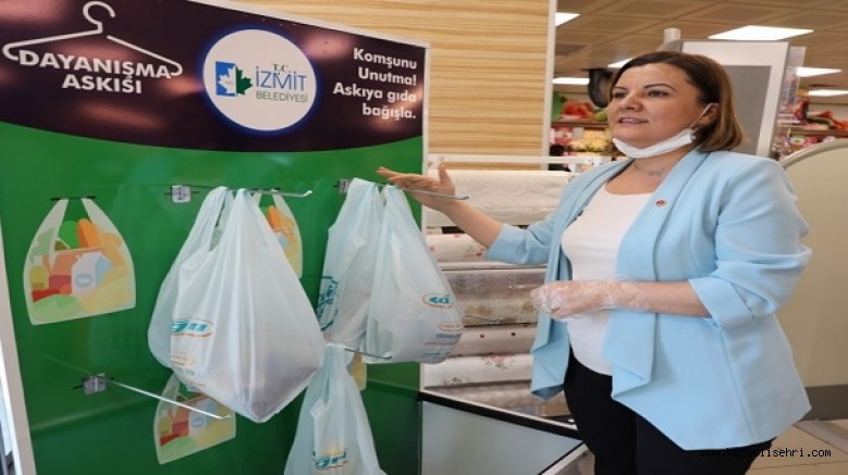 Koronavirüs ile mücadeleyi kent dayanışmasına dönüştüren İzmit Belediyesi anlaşmaya vardığı büyük marketlere “Komşunu unutma, askıya gıda bağışla” diyerek Dayanışma Askısı stantları kurdu. İzmit Belediye Başkanı Av. Fatma Kaplan Hürriyet, Dayanışma Askısı’na ilk gıda poşetini bırakan isim oldu.