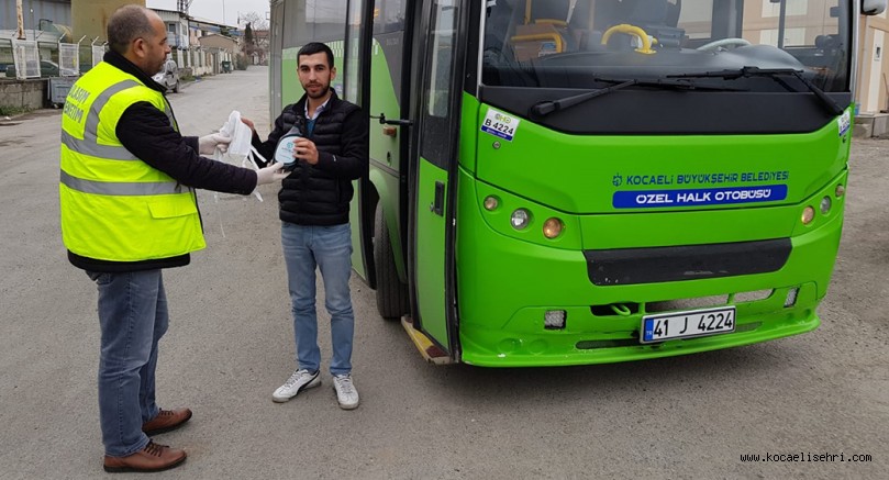 Vatandaşlarımız otobüse binerken rahatlıkla ellerini dezenfekte edebilecek. Salgın riskine karşı otobüs şoförlerinin korunması ve daha rahat çalışabilmeleri için de, şoförlere maske dağıtıldı. Büyükşehir Belediyesi tarafından Kocaeli genelindeki tüm kooperatiflere bağlı 2 bin toplu taşıma aracı için dezenfekte ve maske temin edildi.