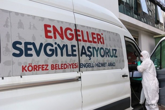 ağlık kuruluşları başta olmak üzere, rehabilitasyon merkezlerinin açılmasıyla birlikte Körfez Belediyesi ‘engelli nakil aracı’ da vatandaşların hizmetine açıldı. Tekerlekli sandalye kullanması zorunlu engelli bireyleri, sağlık kuruluşlarına taşıyan nakil aracında, tüm önlemler alınarak dezenfeksiyon işlemi yapıldı.