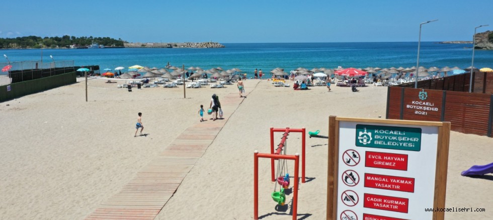 Kocaeli’ni Türkiye çapında önemli bir turizm destinasyonu haline getirmek için var gücüyle çalışan Büyükşehir Belediyesi, bu kapsamda çevre yatırımlarıyla aldığı Mavi Bayraklı plajlarda Kocaelililerin ve çevre illerden gelen vatandaşların pırıl pırıl denizlerde kulaç atmasını sağlıyor. Deniz suyunun temizliğini, çevre yönetimine verilen önemi, plajların hijyenini ve güvenilirliğini uluslararası anlamda teyit eden Mavi Bayrağı 9 ayrı plajda dalgalandıran ve böylece kentin yaz turizminden hak ettiği payı bu yıl da almasını sağlayan Büyükşehir, tüm plajlarda duşlardan giyinme kabinlerine kadar her ihtiyaca cevap veriyor.