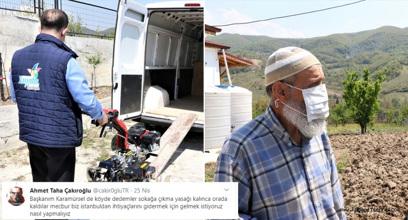 İçişleri Bakanlığı tarafından koronavirüs salgını sebebiyle Türkiye genelinde 65 yaş üstü olanlar ile kronik rahatsızlığı bulunanların evden dışarı çıkmaları, park ve bahçe gibi açık alanlarda dolaşmaları sınırlandırıldı. Bu sebepten dolayı 65 yaş üstü vatandaşlara Kocaeli Büyükşehir Belediyesi Sağlık ve Sosyal Hizmetler Dairesi Başkanlığı’nın “Geniş Ailem” projesi ile destek olunuyor. Bu kapsamda son olarak Karamürsel ilçesi Akçat Mahallesi’nde yaşayan 68 yaşındaki Nurettin Çakıroğlu’na yardım eli uzandı. Çapa motoru bozulduğu için toprağını kazamayan Nurettin Amca’nın İstanbul’da ikamet eden torunu , Büyükşehir’in sosyal medya kanallarından babası için yardım istedi. Ekipler, en kısa zamanda Nurettin Amca’nın tüm ihtiyaçlarını giderdi.