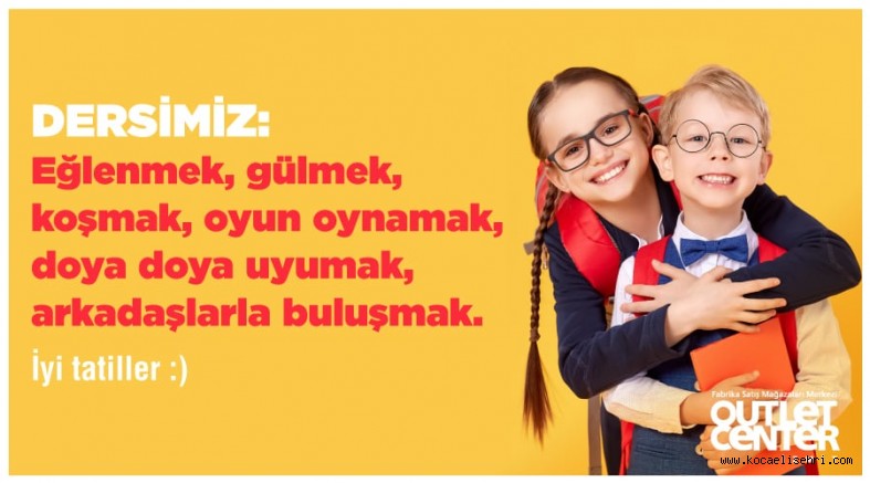 Tüm özel ve önemli günleri hem hesaplı hem de keyifle yaşamak adına müşterileri tarafından tercih edilen Outlet Center İzmit; müşterileri için karlı alışverişin yanı sıra, özellikle öğrenciler için, sömestir heyecanını bir kat daha artırmak üzere eğlenceli bir etkinlik programı hazırladı. Sömestir Tatilinde veliler alışveriş yaparken, hava şartları uygun olduğu takdirde, çocuklar kendilerine özel hazırlanan eğlenceli etkinliklere katılabilecek.