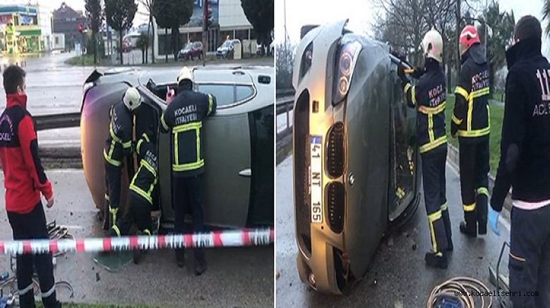 İzmit Ömer Türkçakal Bulvarında yağmur nedeniyle kayganlaşan yolda kontrolden çıkan araç bariyerlere çarparak yan yattı. Araç içerisinde sıkışan yaralıyı Kocaeli Büyükşehir Belediyesi itfaiye ekipleri kurtardı.