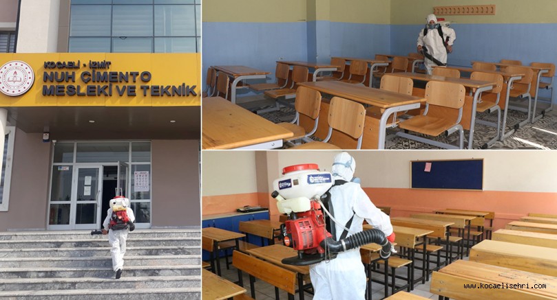 Kocaeli’nde 12 ilçede ÖSYM tarafından seçilmiş 55 okulda yapılacak olan Milli Savunma Üniversitesi Askeri Öğrenci Aday Belirleme Sınavı için Sağlık Bakanlığı onaylı insan sağlığını tehdit etmeyen biyosidal ürün ile itinalı biçimde dezenfekte çalışması yapıldı.