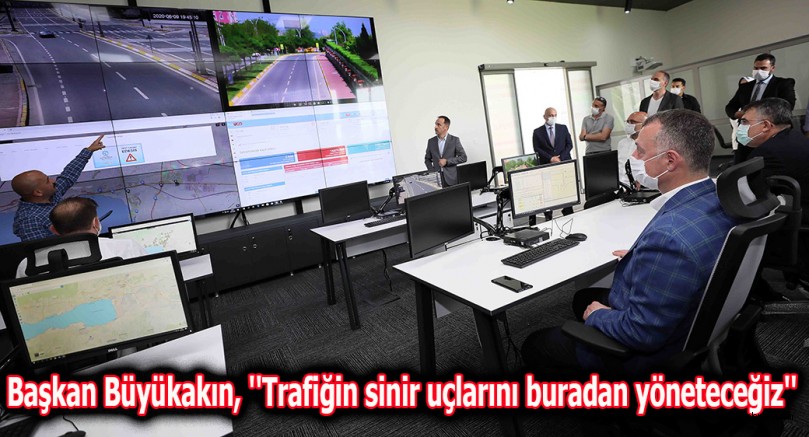 Farklı birimlerin bir arada çalışacağı 12 operatör ile bir çok fonksiyonun entegre şekilde görev yapacağı kurulumu yüzde elli aşamasına gelen bu merkezin kurumlararası koordinasyonla daha da gelişeceği bilgisini alan Başkan Büyükakın, “Trafik Yönetim Merkezi, bir bütün olarak trafiğe ilişkin tüm sistemleri kullanmakla birlikte onu yönetmek açısından da önemlidir. Burası aslında toplu taşımanın, otoparkların ve trafikteki araçların yönetiminin beyni diye düşünebileceğiniz bir noktadır. Bütün sistemlerimiz ve 250’ye yakın kavşağın tamamı buraya bağlı olmakla birlikte bu merkezden idare edilebilmektedir. Yine toplu taşıma araçlarının içindeki kameraların tamamı buraya bağlı durumdadır. EDS kameralarının önümüzdeki süreçte yaygınlaştırılması ile onların da tamamı buraya bağlı olacak. Bu merkezimiz; şehrin tamamının anlık fotoğrafını çekebileceğimiz, trafiğin nerede sıkıştığını nerede oluştuğunu görebileceğimiz ve ona göre buradan karar alıcıların eline çok güçlü verileri ulaştıracak bir merkez olacak. Bir manada trafiğin sinir uçlarını buradan takip etmiş ve yönetmiş olacağız” açıklamasını yaptı.