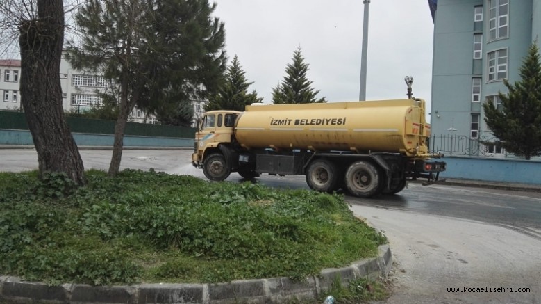 İzmit Belediyesinin Koronavirüsle Mücadele Çalışmaları Halkın Sağlını Korumak Adına Gece Gündüz Devam Ediyor. Av. Fatma Kaplan Hürriyet Başkanlığında Tüm Birimleriyle Mücadele Eden İzmit Belediyesi Ekipleri Yahya Kaptan Mahallesi’nin Cadde Ve Sokaklarını Su Tanker Eşliğinde İlaçlı Suyla Yıkayarak Dezenfekte Etti.