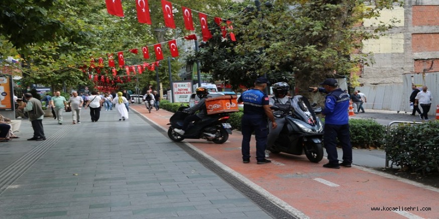 Kocaeli Büyükşehir Belediyesi, İzmit’in en işlek bölgesi olan Cumhuriyet Bulvarı’nda yayaların güvenliğini en üst seviyede sağlamak için çalışmalarını sürdürüyor. Her gün on binlerce kişinin kullandığı bulvarda, motosiklet ve akülü bisiklet kullanımı yasaklanmıştı. Zabıta ekipleri de gün içerisinde bulvarda sürekli devriye gezerek bu araçları kullanan sürücüleri uyarıyor. Yasağa uymayan motosiklet ve akülü bisiklet sürücüleri, araç yoluna yönlendiriliyor.